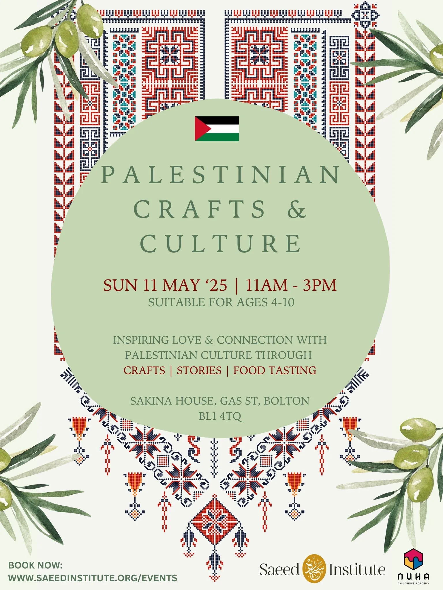 Children and can take home their creations and there will also be an opportunity to purchase some baked goods as well as Palestine themed merchandise and oil/dates from the blessed land.