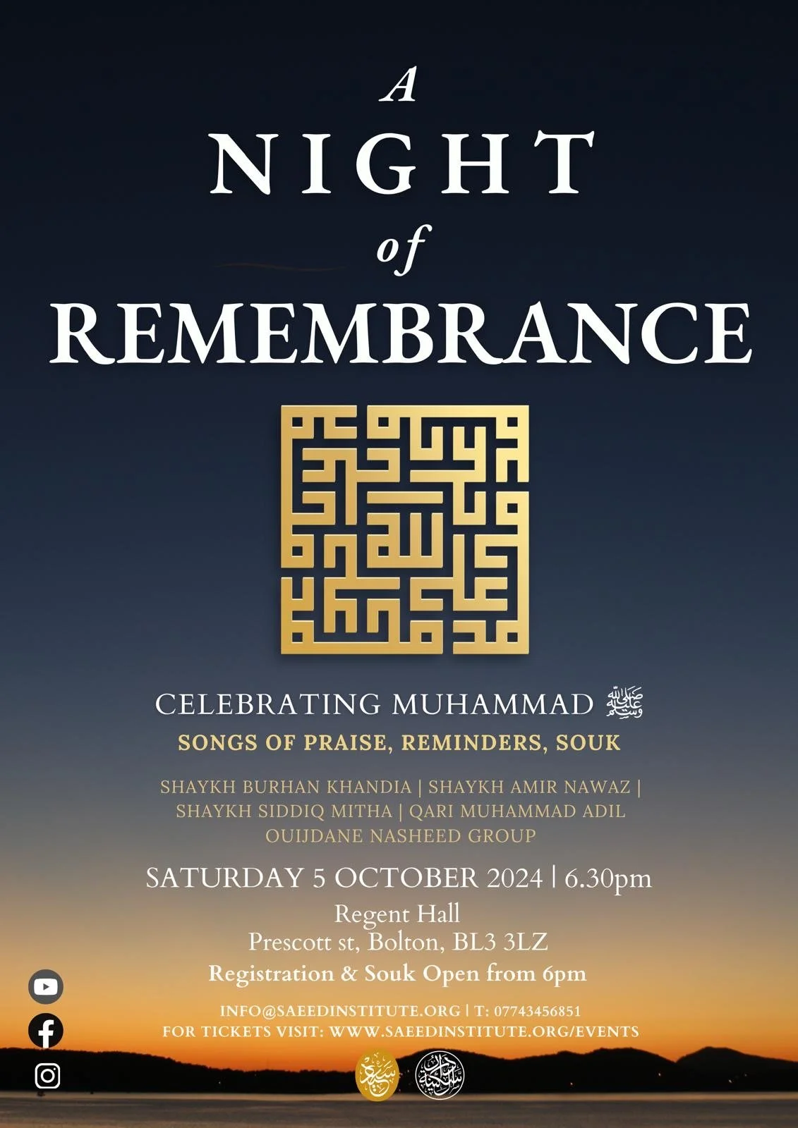 In the tradition of the Saeed Institute’s "Night of Remembrance" events, this Mawlid aims to revive hearts, strengthen bonds, and inspire meaningful giving.